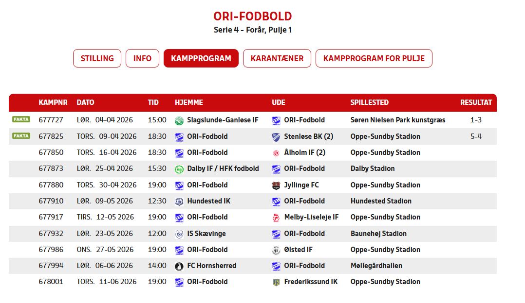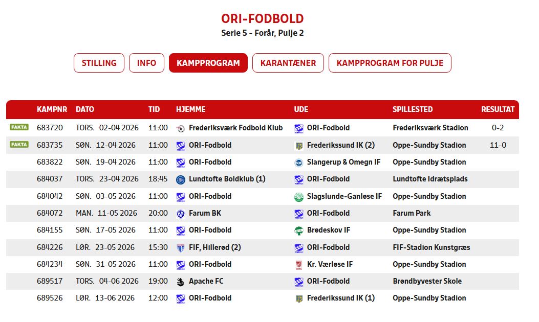 Vores kamp program og resultater kan du finde her.